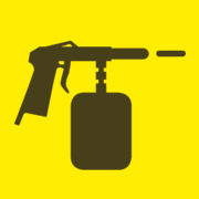 Danach mit Hochdruckreiniger abspritzen oder mit Schwamm, Bürste und Wasser reinigen. Alternativ mit einer wassergefüllten Lackierpistole, eingestellt auf Punktstrahl, abspritzen.