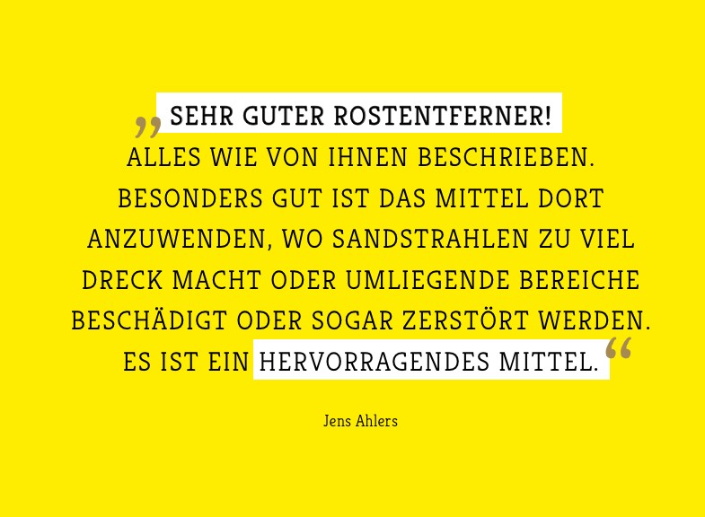 Der einfache und gründliche Rostentferner zur rückstandslosen Entfernung von Rost. Entfernen Sie: Flugrost auf Chrom, Edelstahl und Lack. Ohne Schleifpapier oder Drahtbürste. Für Profis und Heimwerker. Restaurierung von Oldtimern, Youngtimern, PKW's, LKW's, Booten, etc. Für Karosserie- und Maschinenbau im Spritzverfahren einsetzbar. Senkrecht zu verarbeiten durch pastöse Konsistenz.